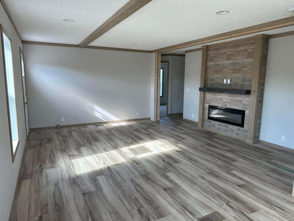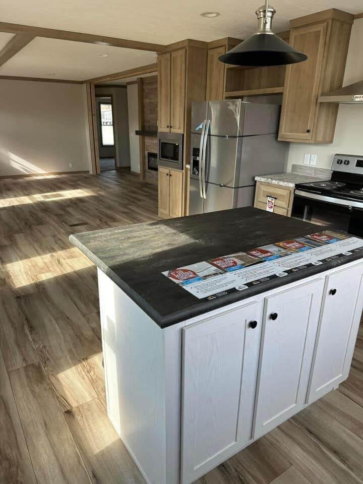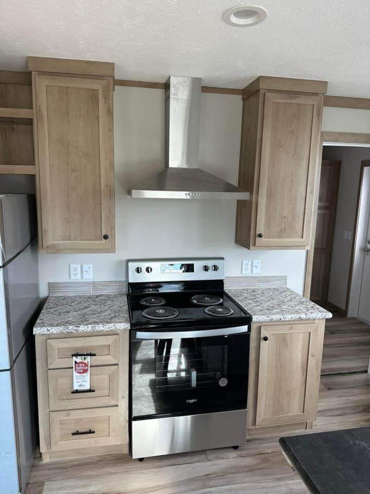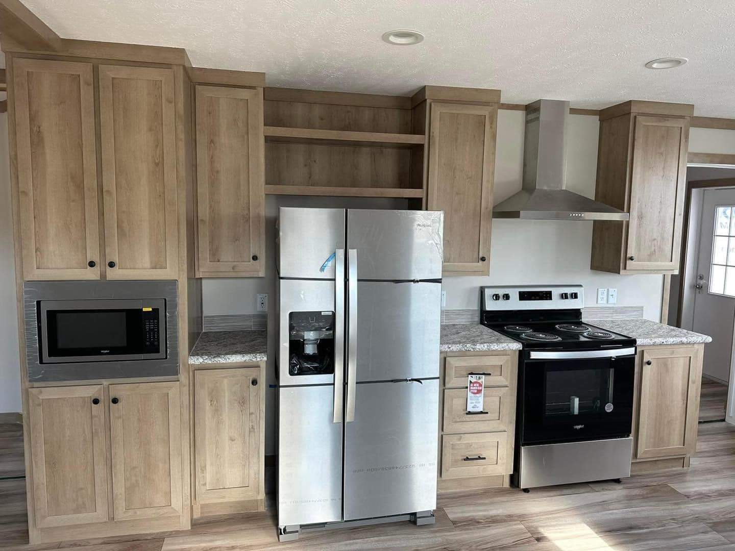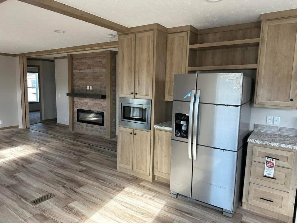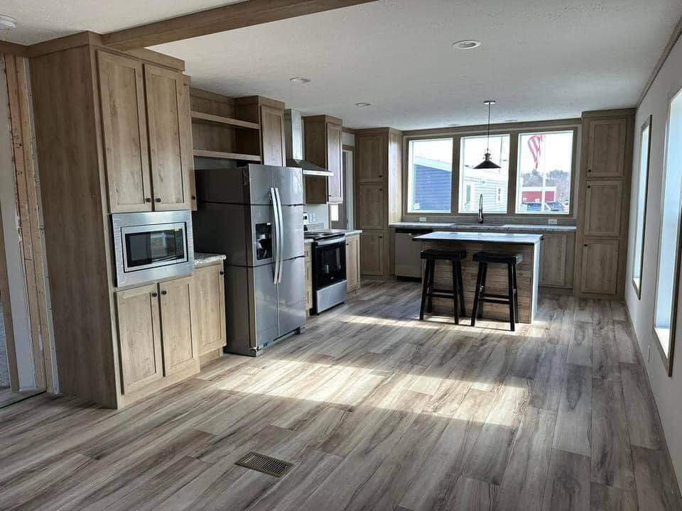 Introducing The Charming Home, a home featuring 3 bedrooms and 2 bathrooms within a cozy 28×52 (48) layout. This new 2024 model is designed with finished drywall and durable 2×6 exterior walls, wrapped in OSB for enhanced protection. The kitchen comes equipped with stainless steel appliances, perfect for your culinary needs.