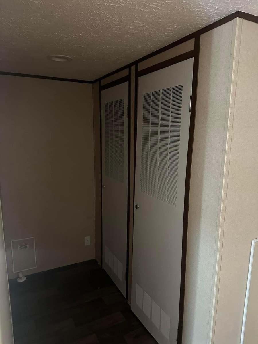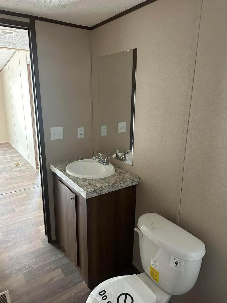Introducing The Marvel Home, featuring 4 bedrooms, 2 bathrooms, and a den within a spacious 28×60 (56) layout. This home is wrapped in OSB for durability and comes with the E-Built Low Energy Package, ensuring energy efficiency. The kitchen is equipped with sleek black appliances, perfect for modern living.